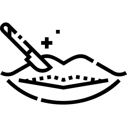 Schnitt am Lippenrot-Rand – sichtbarer, daher nur bei klarer Indikation. Wir priorisieren unauffällige Narbenführung.